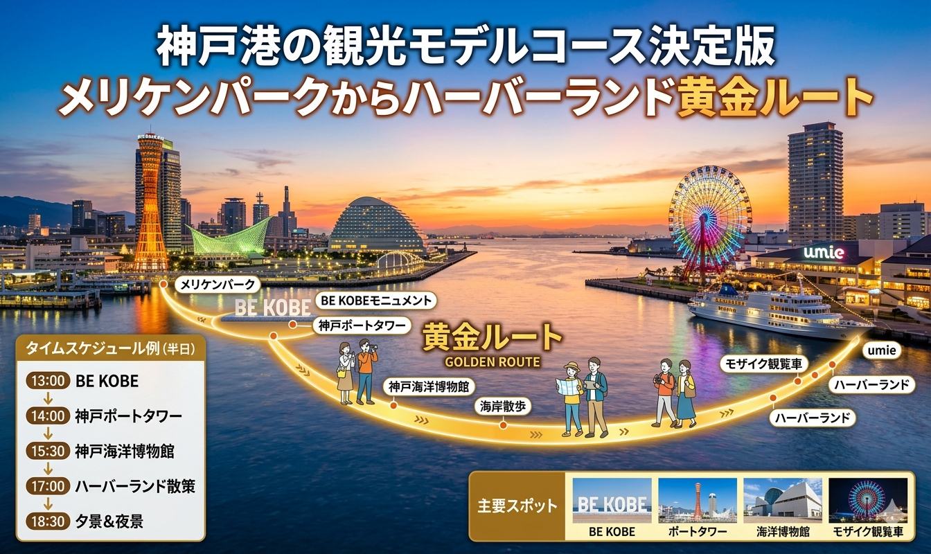 神戸港観光モデルコースの成功条件は、予約と移動の段取りを先に決めて、風対策で撤退を防ぐことです。